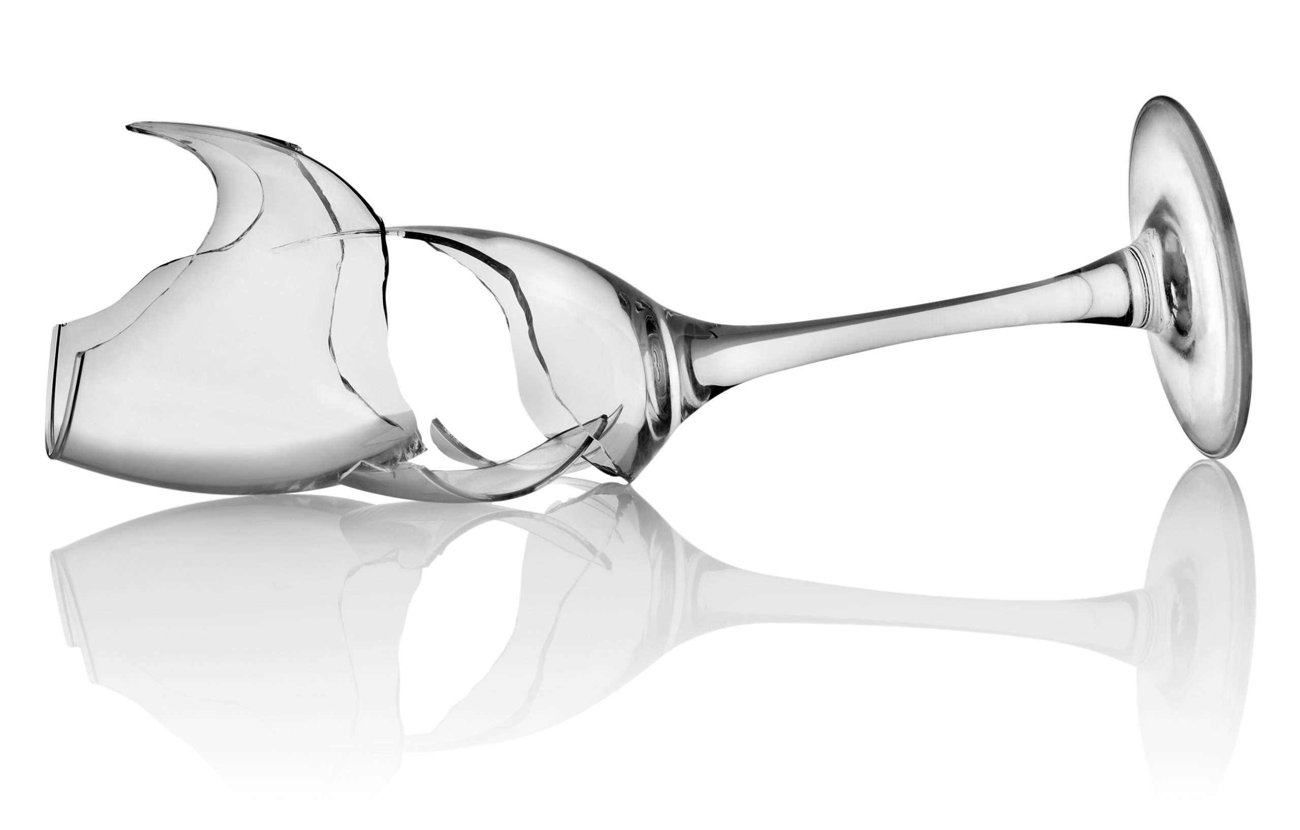 Broken wine glass isolated