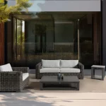 Where contemporary design meets outdoor durabilityโthe Cubo Dining Arm Chair brings sophisticated comfort to your patio with a sturdy aluminum frame built to withstand Alberta’s seasons.